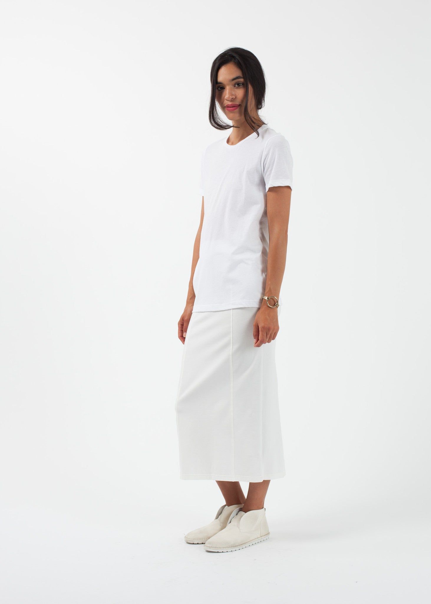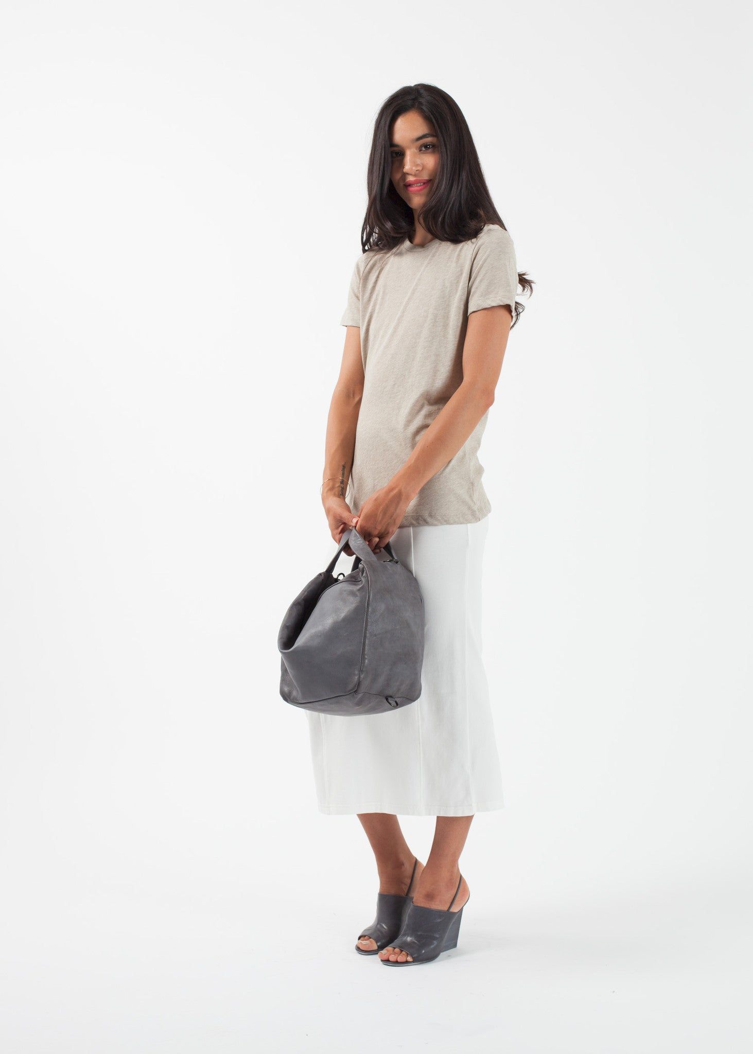 Borrowed from the boys, this tee offers outstanding comfort with an idea amount of stretch. Slightly oversized in fit, but in a good way. Crew neckline. Organic by John Patrick. 90% Cotton, 10% Polyester. Made in Peru. Ashley is wearing an X-Small.